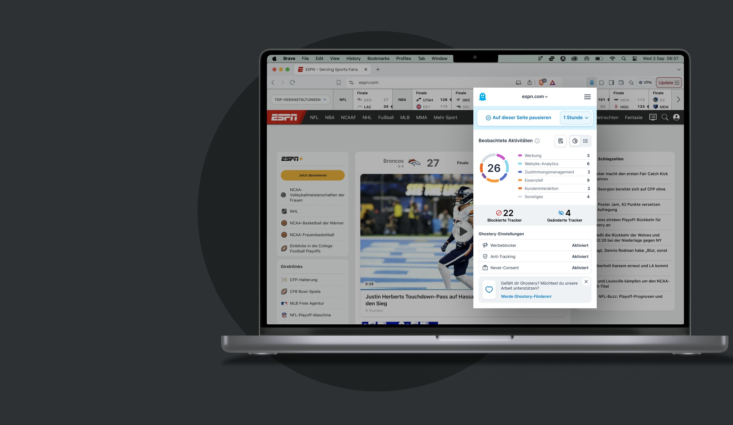 Ghostery blockiert Werbung, Tracker und Popups in Brave, deckt die Unternehmen hinter Trackingversuchen auf und bietet dir mehr Transparenz und zuverlässigen Datenschutz über alle Browser hinweg.